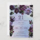 Dark purple and lavender roses, peonies and berries create a gothic vibe. Edgy foliage adds to the drama, while a soft purple, blue and pink watercolor wash adds a soft feminine touch and keeps it from being too dark. The back is as pretty as the front with a unique gothic bouquet set on the same watercolor wash. The typography adds a vintage, retro vibe. All of the text is editable so you can set just the right tone. You can easily change fonts and colour as well. This 21st birthday invitation is available in both traditional cardstock and a downloadable version. It is part of the Moody Purple Flower collection. It lets you choose a theme and then easily create a unique invitation suite, welcome signs and party decorates. It makes party planning fun and enjoyable.