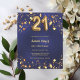 A modern, stylish invitation for a 21st birthday. A navy blue background, decorated with golden stars. The blue colour is uneven. Personalise and add your name and party details.