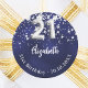 21st birthday navy blue silver stars classic round sticker