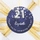 A sticker for a 21st birthday celebration. A navy blue background colour with faux silver stars. The blue colour is uneven. Add your name, text. Text: Thank you for celebrating with me!