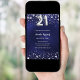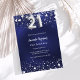 A modern, stylish and glamourous invitation for a 21st birthday party. A navy blue background, decorated with faux silver stars. The blue colour is uneven. Personalise and add your name and party details. Number 21 is written with a balloon style font.