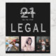 A bottle label for a 21st birthday party, celebrating her life with a collage of 3 of your photos. Personalize and add a name, age 21 and a date. Date of birth or the date of the party. White and gray colored letters. The text: Legal. Elegant, classic chic black background color.