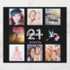 A bottle label for a 21st birthday party, celebrating her life with a collage of 8 of your photos. Templates for a name, age 21 and a date. Date of birth or the date of the party. White and grey coloured letters. Elegant black background colour.