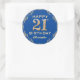 21st Birthday Party Blue and Gold Glitter Frame Classic Round Sticker