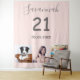 For a 21st birthday party. A collage of 3 of your photos of herself friends, family, interest or pets. Rose gold, pink background colour. Personalise and add her name, age 21 and a date. Date of birth or the date of the birthday party. Grey coloured text.