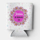 21st Birthday Celebration Can Cooler in pink, purple and gold with beautiful flower lei wreath. The words "Jessica Is Turning 21" in modern black & white text is completely customisable. So are the colours by using the edit menu.