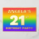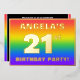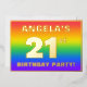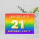 The front of this exciting twenty-first birthday celebration/party foil invitation card design features an editable name, a large number “21st”, the message “BIRTHDAY PARTY!”, and a border. The background of the front features an upbeat, multicolored, rainbow spectrum inspired gradient pattern. The back features personalised details about the event, such as the date, time, venue/location, and any other important information. Customised invitations like these might be a fun way to invite guests/attendees to a birthday party being held to honour somebody’s 21st birthday. [~Z0000599]