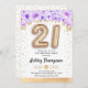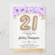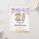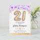 21st birthday party invitation. Elegant design in faux glitter gold with floral accent. Invite card with gold number 21 balloons, script font with confetti. Purple, lavender and white. Perfect for a stylish bday celebration. Message me if you need custom age.