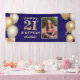 21st Birthday Party Navy Blue and Gold Balloons Photo Banner. For further customisation, please click the "Customise it" button and use our design tool to modify this template.