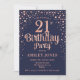 Elegant design in navy and faux glitter rose gold. Features stylish script font and confetti. Message me if you need custom age.