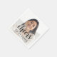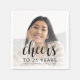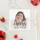 This custom 21st birthday napkin features the guest of honour's personalised photo, name, and birthday, along with the word "Cheers" in elegant black calligraphy script. A white screen helps make the text pop. A great way to celebrate someone who's turning 21!