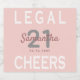 A girly, elegant and feminine bottle label for a fun 21st birthday party. Personalise and add a name, age 21 and a date. Date of birth or the date of the party. White and dark rose gold coloured letters. Stylish and trendy rose gold, blush pink background colour. The text: Legal and Cheers in large whte block letters.