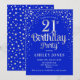 Elegant design in royal blue and faux glitter silver. Features stylish script font and confetti. Message me if you need custom age.