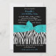 21st Birthday Party, Zebra, black turquoise white Invitation
