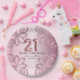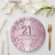 21st Birthday Pink Princess Glitter Balloon Script Paper Plate