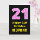 21st Birthday: Pink Stripes and Hearts "21" + Name Card