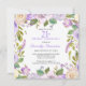 Honor a special person with this elegant watercolor purple floral birthday party invitation. A variety of purple and ivory white roses tucked into dark green foliage create a square botanical frame.