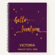 Elegant and modern for your notes or as a guestbook for a 21st birthday party.  A Purple backdrop and faux gold text written with a trendy hand-lettered style script: hello twentyone. With golden dots as decor. Templates for name and date, golden letters. You can change the background colour to match your theme. Click customise and then "select a background colour" on your right.