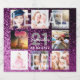 A bottle label for a 21st birthday party, celebrating her life with a collage of 8 of your photos. Personalize and add a name, age 21 and a date. Date of birth or the date of the party. White and gray colored letters. Elegant, feminine and glamorous dark purple faux glitter background. The text: Legal and Cheers written over the photos as watermarks.