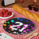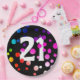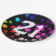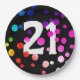 21st Birthday Rainbow Dots on Black Paper Plate