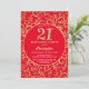 21st Birthday Red and Gold Floral Pattern Birthday Invitation. For further customisation, please click the "Customise it" button and use our design tool to modify this template.
