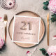Elegant, classic, glamourous and girly for a 21st birthday party. Rose gold and blush pink, gradient background. Decorated with rose gold, pink faux glitter drips, paint dripping look. Personalise and add a name. With the text: Happy Birthday. The text is written with a modern dark rose coloured hand lettered style script. Number 21 is written with a balloon style font.