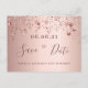 A feminine and glamourous Save the Date card for a 21st birthday party 21 years old. A feminine pink, rose gold faux metallic looking background decorated with faux rose gold sparkling stars. Templates for a date and your text. Dark rose gold coloured letters. The text: Save the Date is written with a large trendy hand lettered style script.