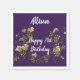 Hosting a cocktail hour or birthday party for someone's 21st birthday? These paper napkins feature a vintage sketch of grapes, vines, and leaves that surround your birthday wishes. The birthday girl or boy's name appears above the botanical frame set against a royal purple background. All text can easily be personalised.