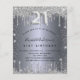 A modern, stylish and glamourous invitation for a 21st birthday party. A faux silver looking background, decorated with glitter. Personalise and add your name and party details. Number 21 is written with a balloon style font, script.