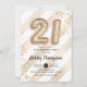 21st birthday party invitation. Elegant design in faux glitter gold with white stripes. Invite card with gold number 21 balloons, script font with confetti. Perfect for a stylish 21st bday celebration. Message me if you need custom age.