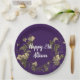 Hosting a 21st birthday celebration? These party paper plates feature a vintage sketch of grapes, vines, and leaves that curve around the birthday plate against a royal purple background. The centre features "Happy 21st" and the special birthday girl or boy's name. Easily personalise for an extra special touch to your party.