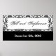 22.5"x7.5" Personalised Banner Black White Damask Poster