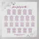 This simple yet elegant wedding seating chart contains space for 220 names at 22 tables with the traditional 10 seats per table. The cassis purple, magenta, or berry and grey design features a script calligraphy title, and silver faux foil lacy frills on a grey background. Wonderful way to help your guests find their tables while adding class, elegance, and style to your wedding reception.