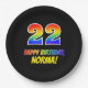 22nd Birthday: Bold, Fun, Simple, Rainbow 22 Paper Plate