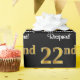 This stylish, luxurious, and elegant birthday wrapping paper design features a large ordinal number “22nd” having an imitation/faux gold-inspired gradient pattern, in addition to the birthday greeting message “Happy 22nd Birthday,” and a customisable recipient name in a script-style font. The background is coloured black. Birthday themed wrapping paper like this might be used when giving a gift or present in celebration of somebody’s twenty second birthday. [~Z0000515]
