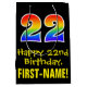 This colourful, exciting, and fun birthday-themed gift bag design features a large number "22" with a rainbow spectrum gradient inspired pattern, along with the message "Happy 22nd Birthday,", and an editable recipient name. The background is coloured black. A gift bag like this might be used when giving a gift or present in honour of somebody’s twenty second birthday. [~Z0000512]