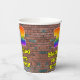 This exciting and vibrant urban street art and graffiti themed birthday paper cup design features a large number “22” having a colourful rainbow spectrum gradient inspired pattern. It also features the message “Happy 22nd Birthday,”, and a custom name. The background features a brick wall pattern. Vibrant, colourful paper cups like this might be fun to use at a birthday celebration being held in celebration of somebody’s 22nd birthday. [~Z0000543]