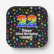 22nd Birthday: Fun Stars Pattern and Rainbow “22” Paper Plate