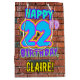 The front of this fun birthday-themed gift bag design features the message “HAPPY 22ND BIRTHDAY,” having a colourful, vibrant, graffiti-inspired appearance, in addition to a personalised recipient name. The background features a pattern inspired by the look of a brick wall. A birthday themed gift bag like this might be used when giving a gift or present in celebration of somebody’s twenty second birthday. [~Z0000536]
