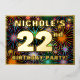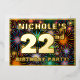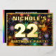 The front of this exciting twenty-second birthday celebration foil invitation card design features a personalised name, a large number “22nd”, the message “BIRTHDAY PARTY!”, and a border. The background of the front has a bold, multicolored pattern that resembles bursting celebratory fireworks. The back features personalised details about the event, such as the date, time, place/venue, and any other useful information. Customisable invitations like these might be a fun way to invite guests to a birthday party/gathering being held in celebration of somebody’s 22nd birthday. [~Z0000602]