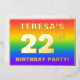 The front of this eye-catching and exciting twenty-second birthday party foil invitation card design features a personalised name, a large number “22nd”, the message “BIRTHDAY PARTY!”, and a border. The background of the front features an upbeat, colourful, rainbow spectrum inspired gradient pattern. The back features personalised details about the event, such as the date, time, location, and any other information that may be useful. Editable invitations like these might be a fun way to invite attendees to a birthday gathering/party being held in celebration of somebody’s 22nd birthday. [~Z0000599]