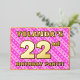 The front of this joyful twenty-second birthday party/celebration foil invitation card design features a personalised name, a large number “22nd”, the message “BIRTHDAY PARTY!”, and a border. The background of the front features a fun dark pink and light pink striped pattern, with heart shapes. The back features personalised details about the event, such as the date, time, venue/location, and any other information that may be important. Customisable invitations like these might be a fun way to invite attendees/guests to a birthday party/gathering being held to honour somebody’s 22nd birthday. [~Z0000603]