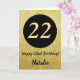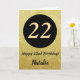 22nd Happy Birthday Black and Gold Glitter Card