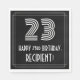 This vintage look birthday paper napkin design features a large Art Deco look inspired number "23", the message "HAPPY 23rd BIRTHDAY,", a custom name, and a border pattern consisting of lines. Fun, editable paper napkins like this might be used at a party being held to celebrate somebody’s 23rd birthday. [~Z0000395]