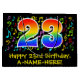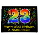 This fun, vibrant, and colourful birthday gift bag design features a large number "23" having a rainbow spectrum gradient inspired pattern. It also features the message "Happy 23rd Birthday,", and a custom name. Part of the background features a colourful music notes and symbols pattern. A birthday themed giftbag like this might be a fun way to wrap a gift or present being given to a singer, a musician, a music composer, or somebody else who is celebrating their 23rd birthday. [~Z0000425]