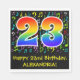 This fun, colourful, and vibrant birthday themed paper napkin design features a large number "23" having a rainbow spectrum gradient inspired pattern. It also features the message "Happy 23rd Birthday,", and a custom name. Part of the background features a pattern of various music notes and symbols having a variety of colours and sizes. Birthday themed paper napkins like this might be used at a party celebrating a musician’s, a singer’s, a composer’s, or somebody else’s twenty third birthday. [~Z0000421]