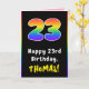 23rd Birthday: Colourful Rainbow # 23, Custom Name Card