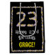 This floral, nature-inspired birthday themed giftbag design has the message “Happy 23rd Birthday,” along with a custom recipient name. The large number “23” plus the border consist of flower icons. A fun birthday themed gift bag like this might be a fun way to wrap a present being given to celebrate somebody’s twenty-third birthday. [~Z0000653]