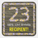 23rd Birthday: Floral Number, Faux Wood Look, Name Square Sticker