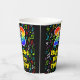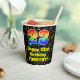 This colourful and joyful music-themed birthday paper cup design features a large number “23” with a rainbow spectrum gradient inspired pattern, along with the message “Happy 23rd Birthday,”, and a personalised name. The background features an exciting and colourful music notes and symbols pattern. Colourful, vibrant paper cups like this might be fun to use at a birthday celebration/party being held in celebration of somebody’s twenty third birthday. [~Z0000541]